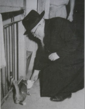 Picture of Rav Eliyahu Lopian feeding the cat: